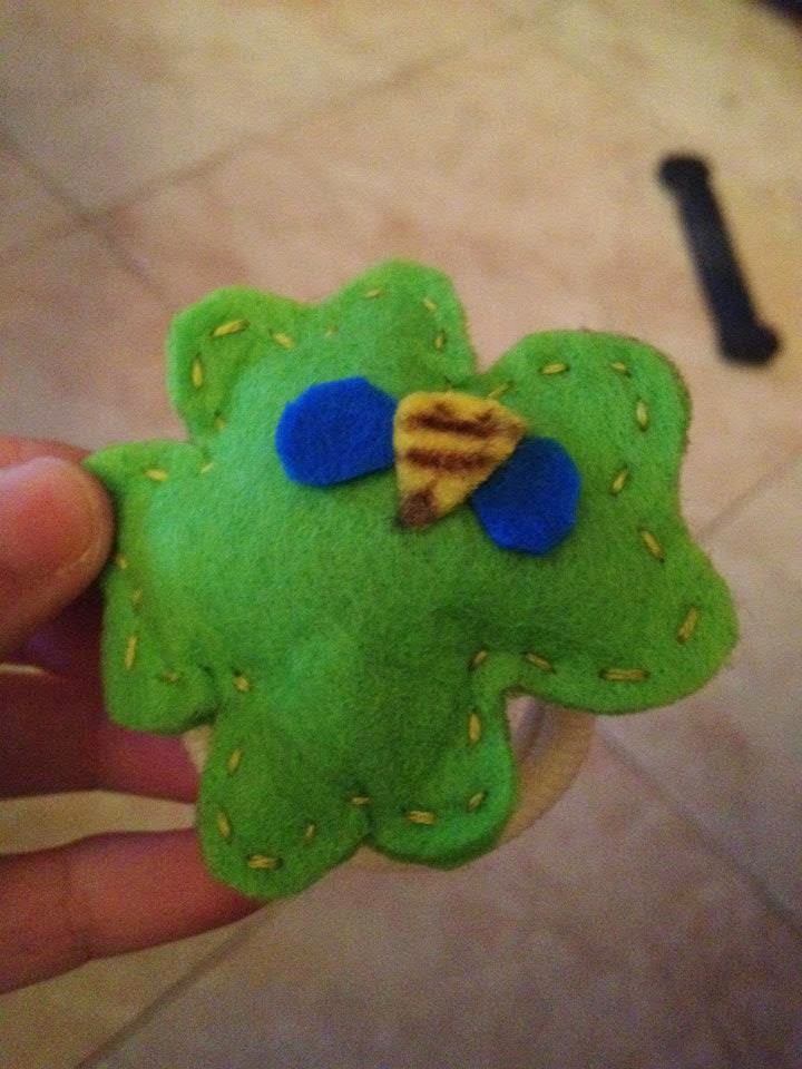El trébol de la suerte con la abejita que no puede faltar ¡Queda monísimo de coletero! :-)